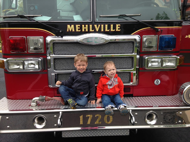 After the move, mommy and daddy's anniversary came quickly. Too quickly! We didn't have time to get a babysitter, so we just decided to take you guys out with us. That turned out to be the best decision ever. We had so much fun celebrating with you guys at Deweys pizza for dinner. Then we walked over to the custard stand. We were lucky to be able to see a train go by while we were there. It was a such a beautiful night that the firefighters were sitting outside that night. You saw them sitting there and asked if you could give them a high five. So of course we let you and they in turn gave you a fire fighter hat and ambulance card. You guys had so much fun that night and so did daddy and I. It was a wonderful way to celebrate 7 years together.